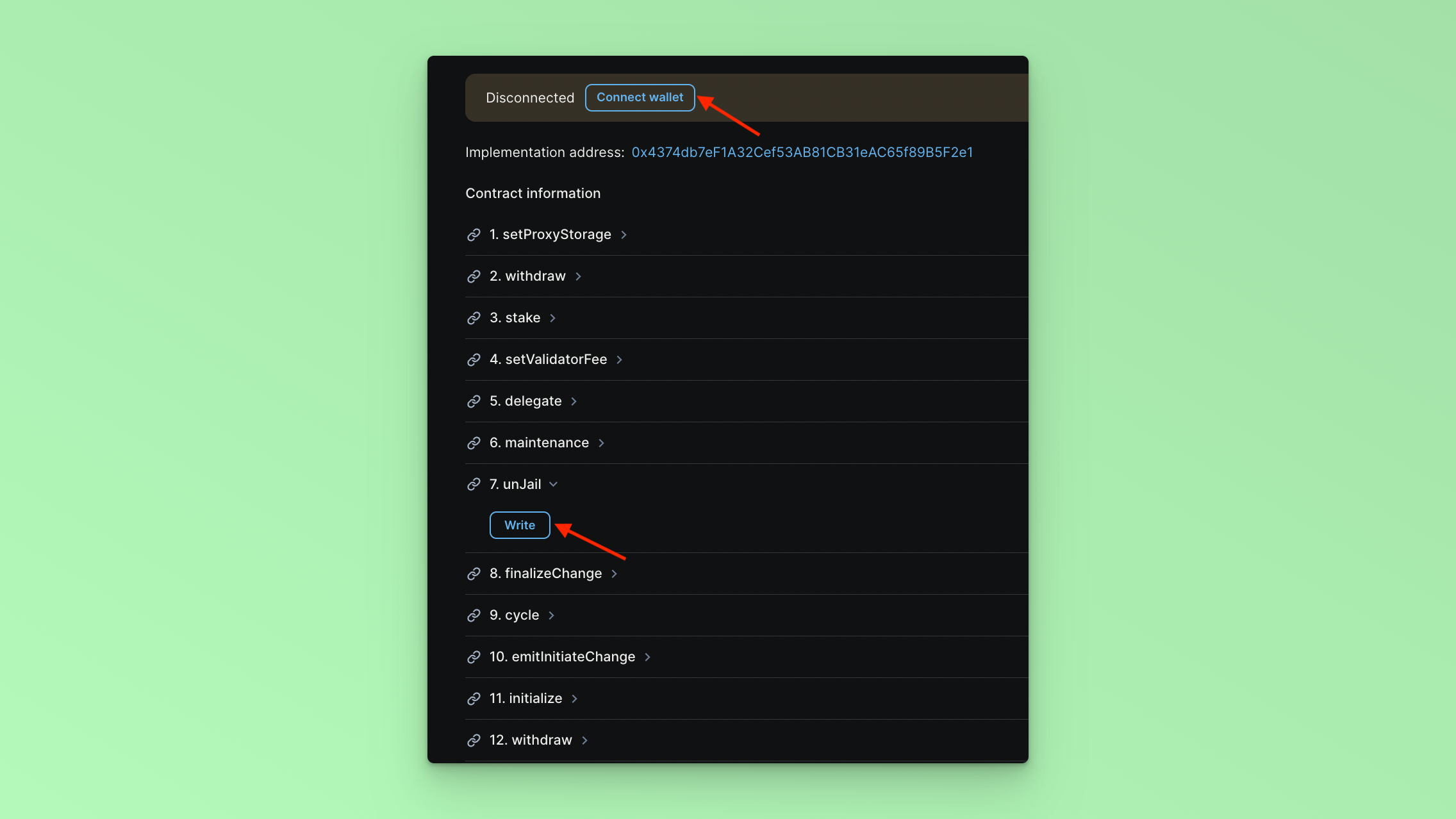 2. Connect to the Smart Contract with your Validator MetaMask address.